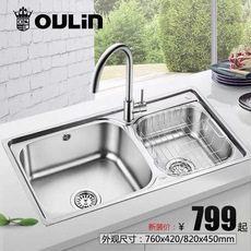 水槽套餐304不锈钢双槽厨房洗菜盆洗菜池双盆OLWG76420正品